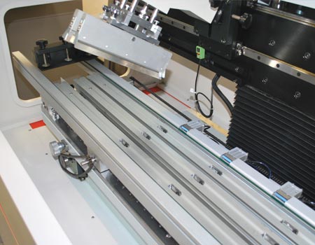 10. 組合式印刷平臺(tái)定位PIN,設(shè)定簡單、換裝迅速,適用于單面基板的生產(chǎn)作業(yè);