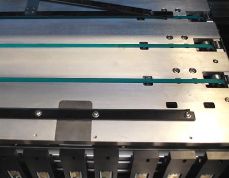 1.電路板傳動采用精密電機帶動工業(yè)皮帶配合精密導(dǎo)軌實現(xiàn),有效提高貼片精度。